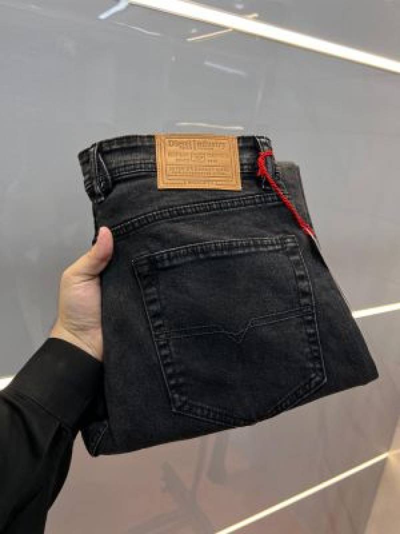 Diese l Black Shade Premium Imported Stretchable Lycra Fabric Straight Fit Denim with Embroidered Work 3473