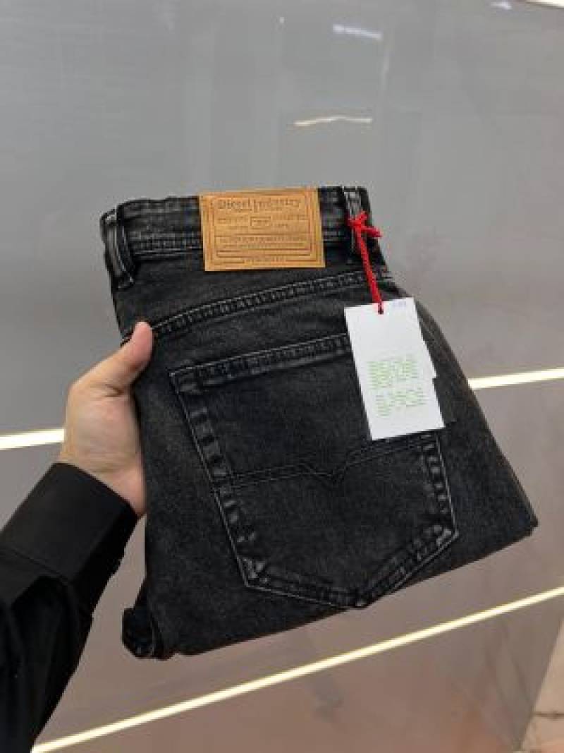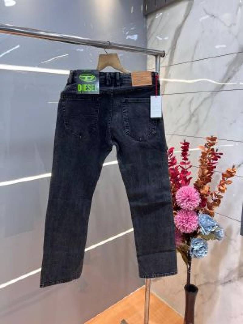 Diese l Dark Grey Shade Premium Imported Stretchable Lycra Fabric Straight Fit Denim with Embroidered Work 3474