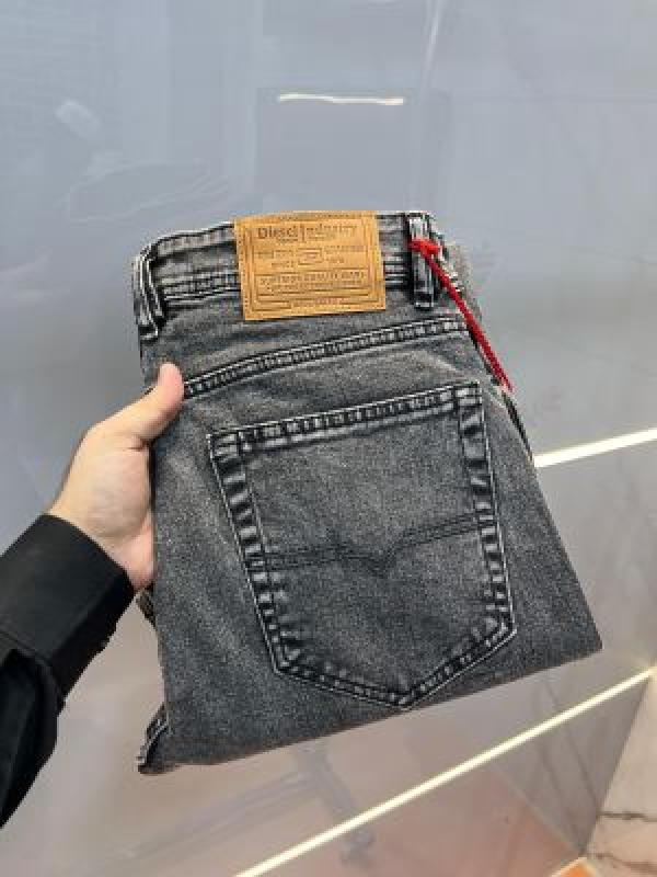 Diese l Dark Grey Shade Premium Imported Stretchable Lycra Fabric Straight Fit Denim with Embroidered Work 3474