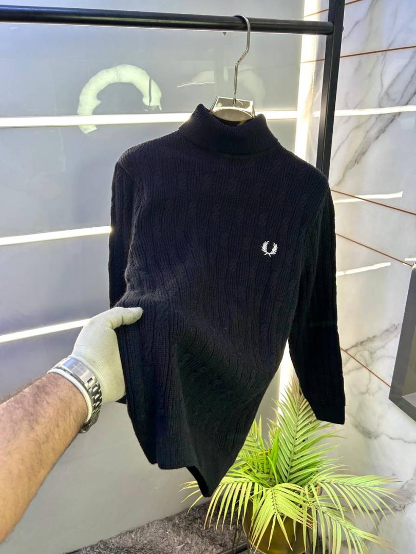 Fred Perry Logo Imported Turtle Neck Black Premium Pullovers F3350-BL