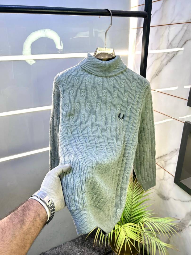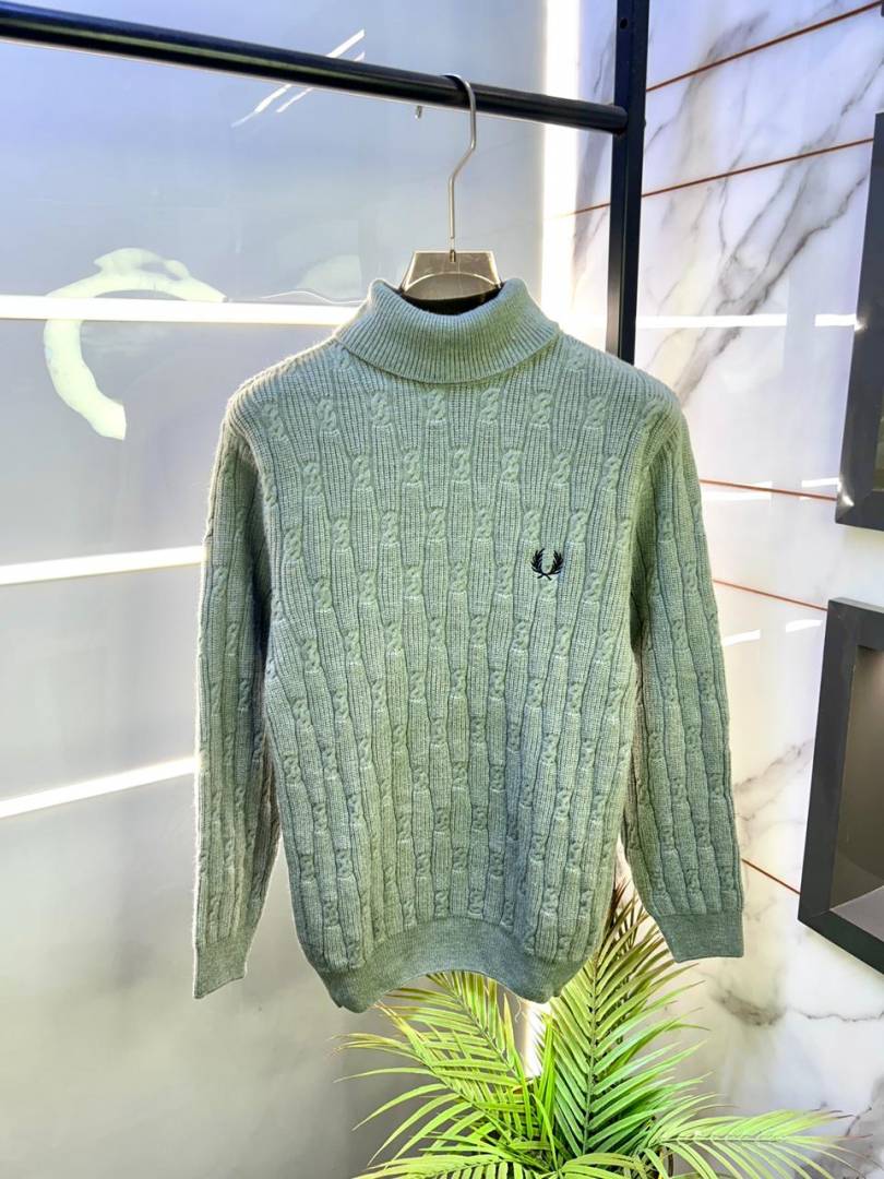 Fred Perry Logo Imported Turtle Neck Grey Premium Pullovers F3350-GY